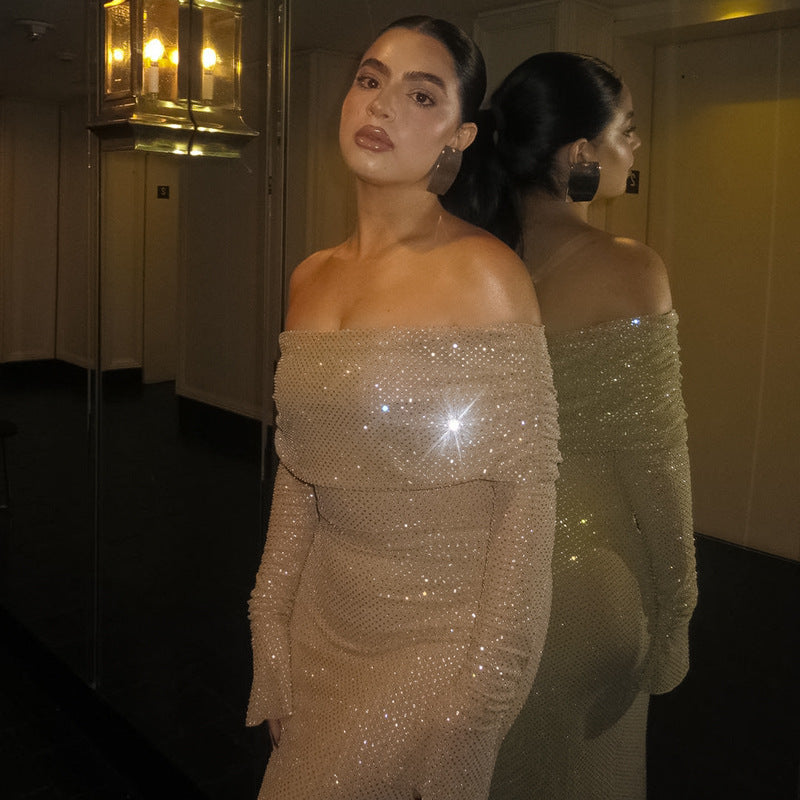Midnight Allure | Backless Off-Shoulder Maxi Dress