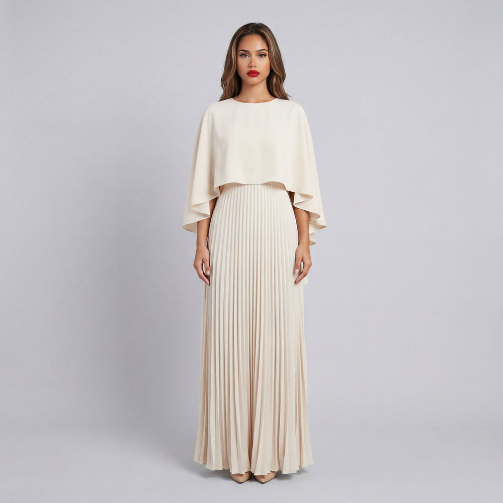 Isabella | Pleated Cape Overlay Maxi Dress