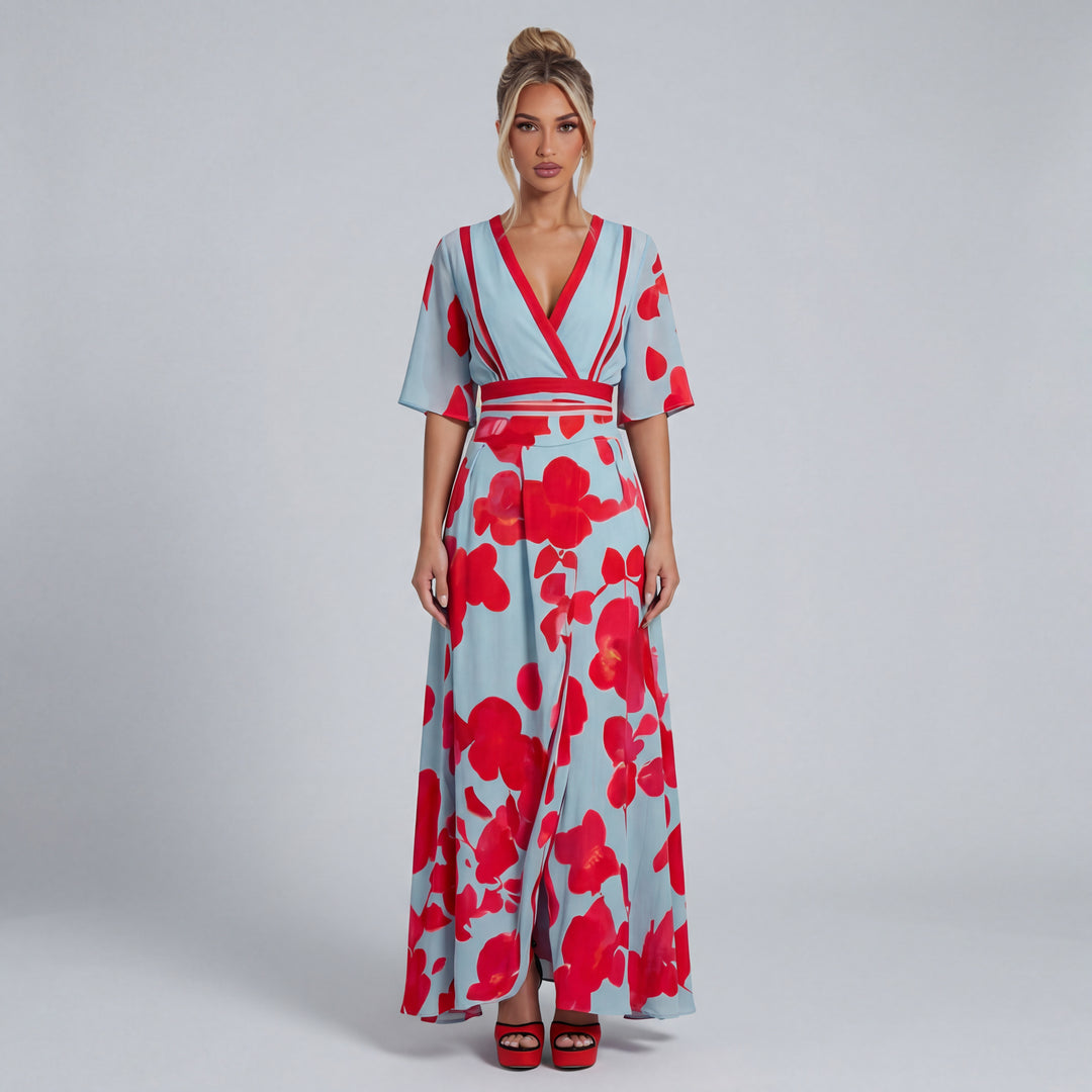 Melanie | Women’s Floral Print V-Neck Maxi Dress