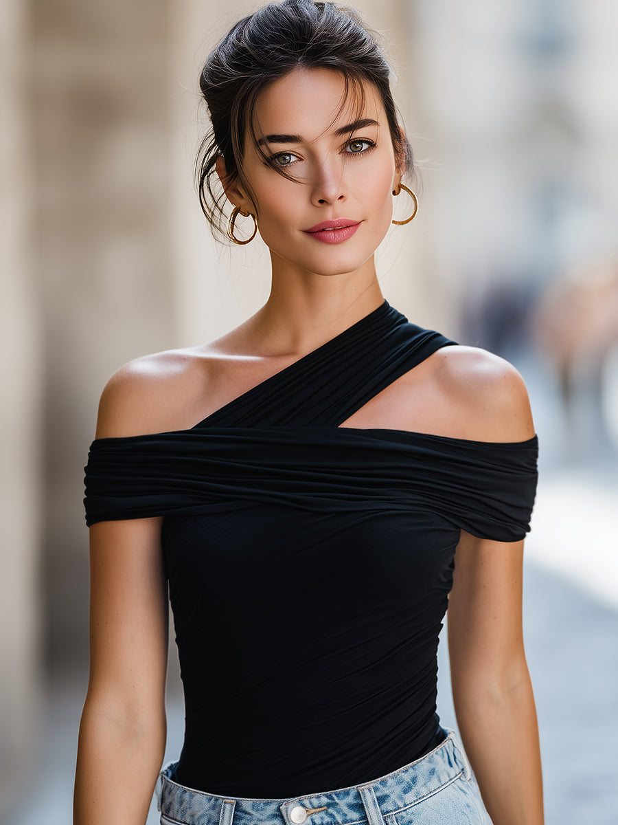 Valeria | Women's Asymmetric Ruched Off-Shoulder Fitted Top