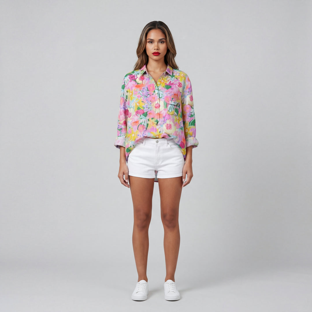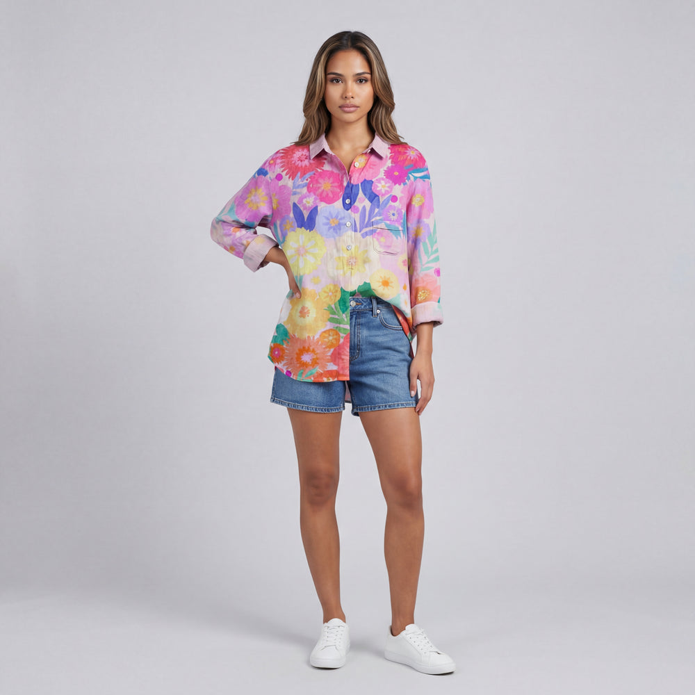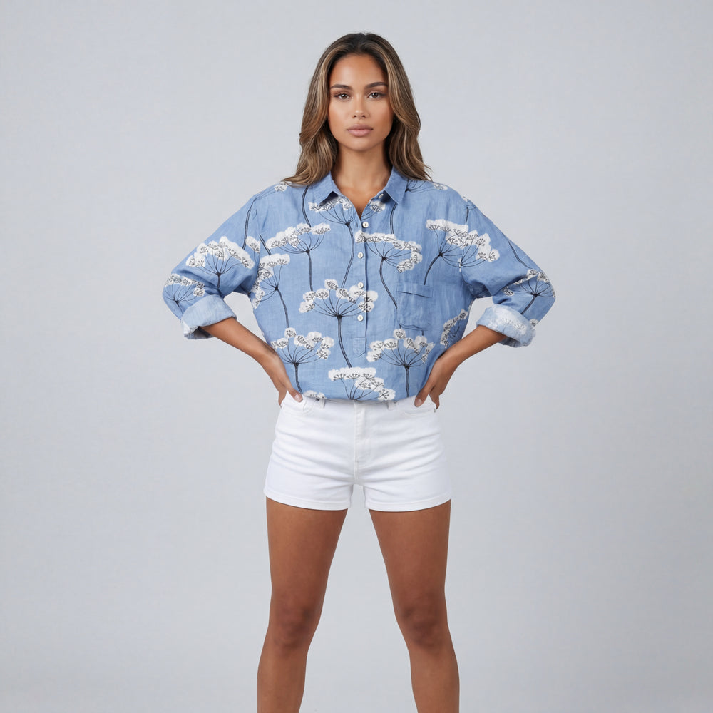 Helene | Women's Relaxed Short Sleeve Button-Up Blouse