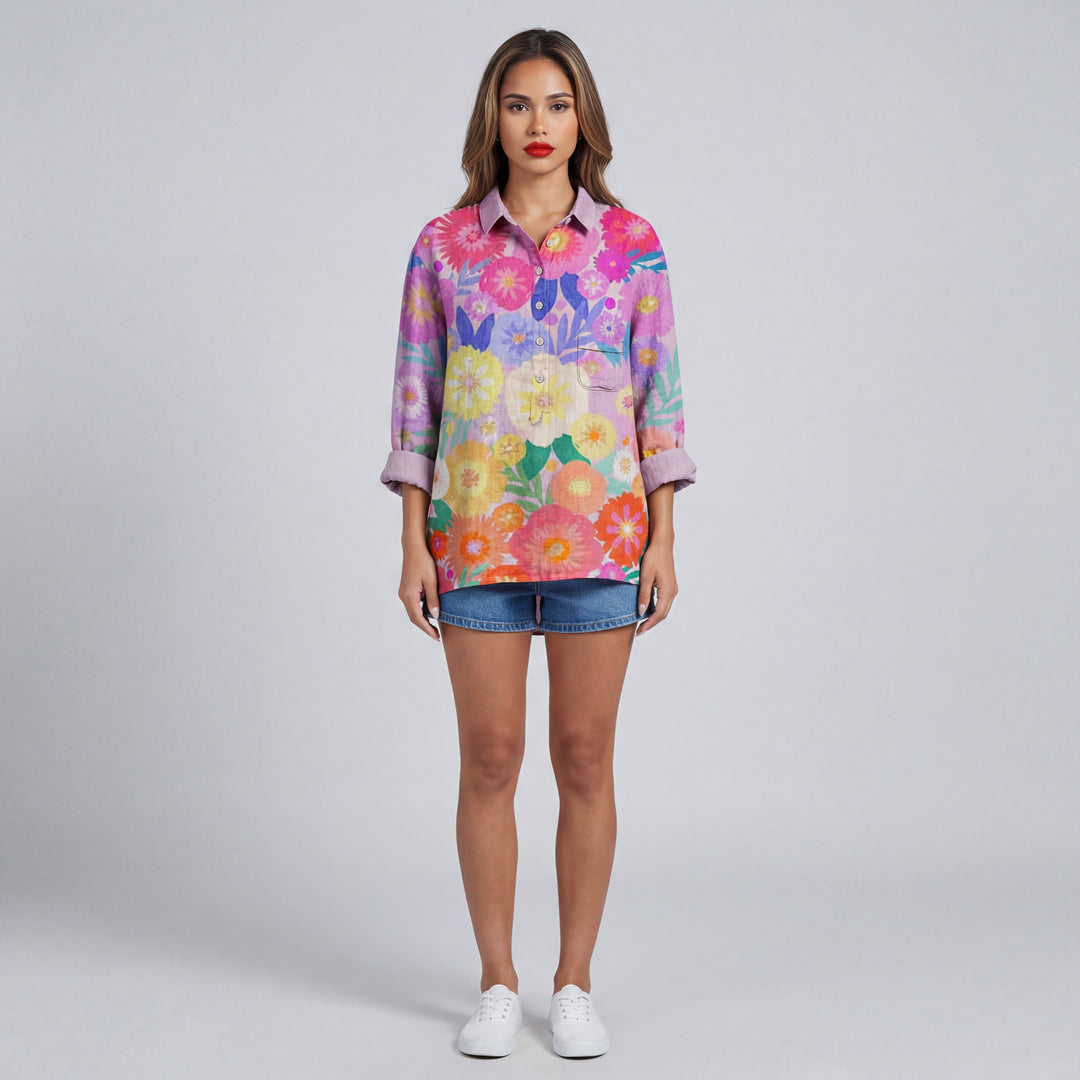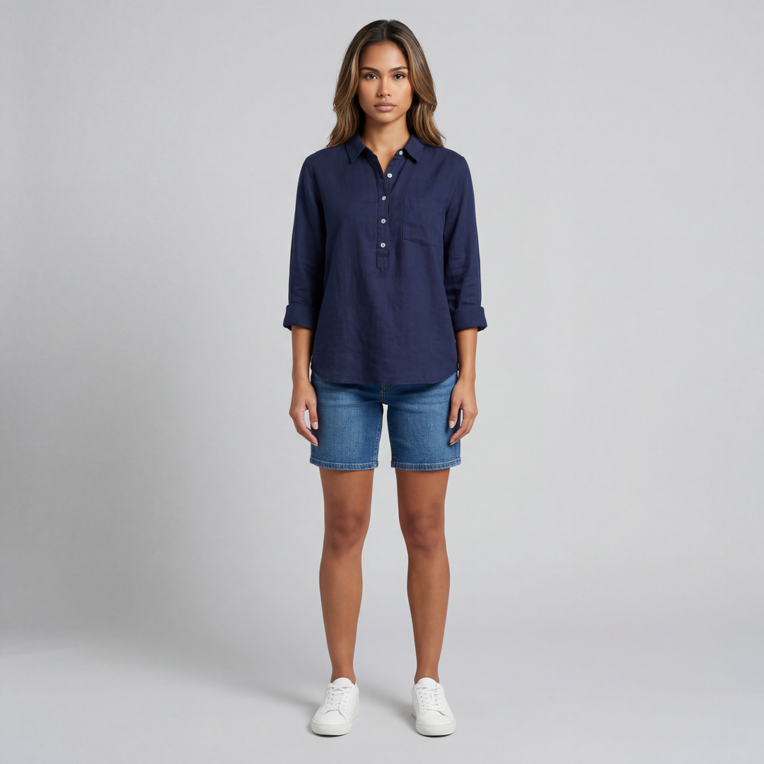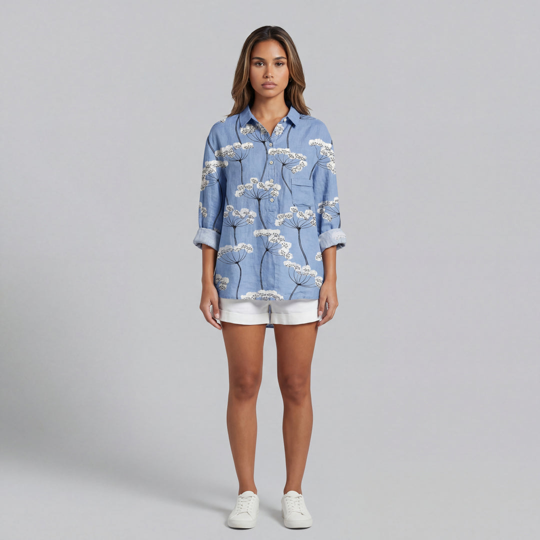 Helene | Women's Relaxed Short Sleeve Button-Up Blouse