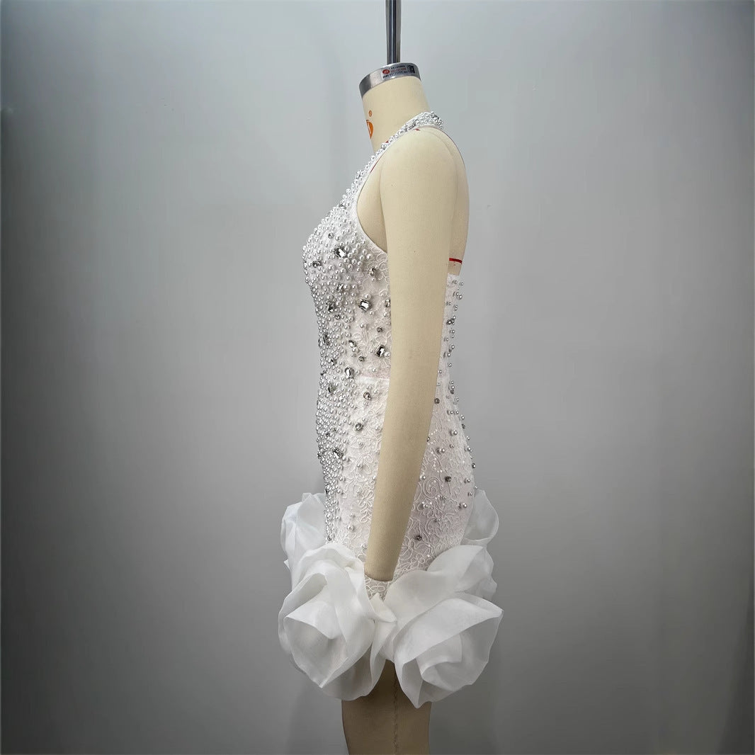 White Halter Beaded Mini Dress